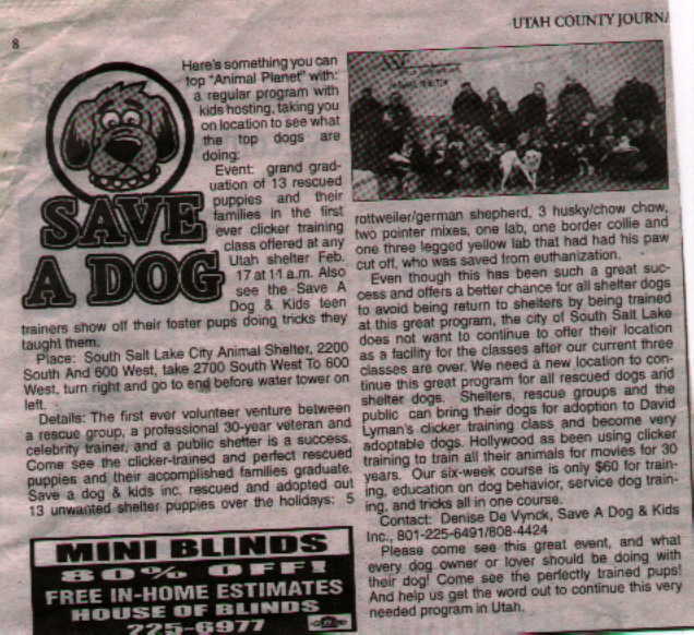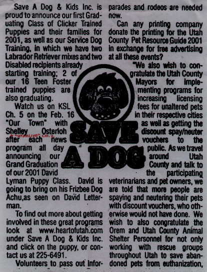 Our SAVE A DOG article in the Utah County Journal was published
