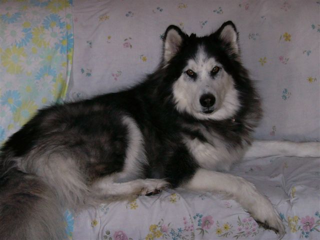 You've come a long way to this perfect Malamute loving and experienced home Kimosabe! bought from a Breeder, at the age of 1 year, Kimo was picked up by animal control each time he got loose from his dog run, and when his owner could not afford to pay the animal shelter fees since he was not neutered, the shelter referred her to have us take him and find him a home. And what a home you have our friend. Karen and Bob have raised kids and grandkids that were pulled in a wagon or sleigh by tons of Malamutes. Kimo is so happy and loved! Thank you Karen for the wonderful letter, these mean so much to us!