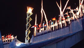 Paralympian brought the torch up with his Seeing Eye German Shephard Dog! Then Muffy Davis