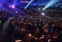Cool Fireworks! Stevie Wonder sang in pouring rain, "We won't let the rain