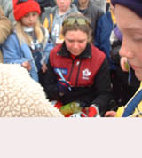 Canadian Paralympic Athlete surrounded by kids wanting her autograph