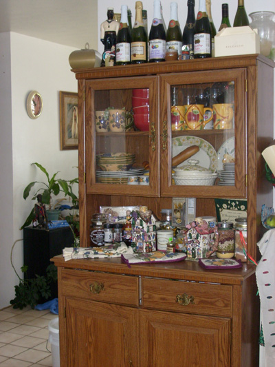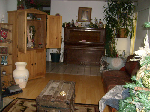 Floor in Living Room and New LEather Furniture, Rustic Cabinet, and Southwestern