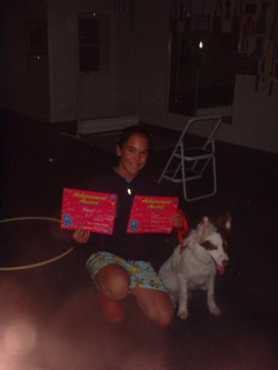 Cassie showed off the great attention Paint pays to her as she gives him his hand signals. Paint also graduated basic puppy socialization and training.