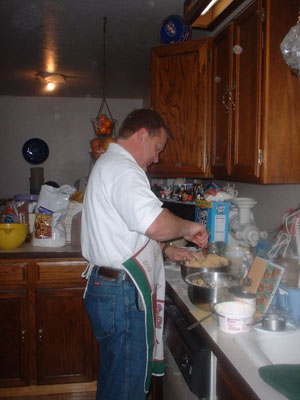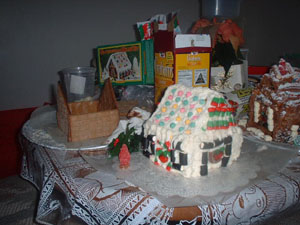 home for the homeless sub for santa baking, ginger bread house making, and presents for kids evening 2004