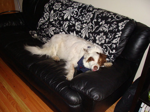 Jonathan is back in the office this afternoon. The final hurdle is whether Paint does well being home with Kira during the day while Jonathan is at work. I think he will be fine, as you can see from the attached he quite enjoys the couch in his new home!