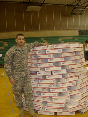 A: Absolutely. That is what we want to do because our Utah military that deploys, and some of them will actually be going on their third deployment this Christmas; our biggest volunteers the Utah Army Reserve at Fort Douglas 96 Sustainment Unit will be going this fall. They were our biggest helpers at our Operation Ensuring Christmas Concert and our Welcome Home Troops celebration last June. They are our dearest friends and we want to make sure that they know that while they are away from their families—one of my dear friends Lt. Colonel Felsch is going to be there for—he’s been in 26 years, and he is going to be in Iraq away from his eight children and his wife in Heber—and I tell you things like this from home will really boost up their spirits while they are over there away from their families at Christmas. That is when it means the most. We also ship all year long.