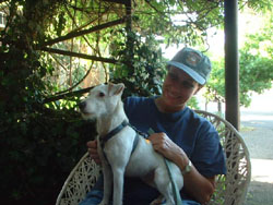 DB COOPER has performed all summer so well, jumping his chairs, hoops, into Elizabeth's lap, and skateboarding. He needs to go to a mature adult with no kids, willing to keep training and socializing him with new people, kids and dogs, and who loves to continue his trick training and performing with our Kids Club.