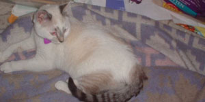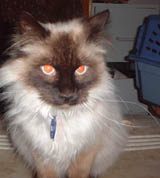 EYECES is an adorable 4 mos. M. Blue eyed little lover. He is a Siamese mix kitten. Totally indoor and litter trained. He loves other cats and small dogs. thanks Angela for adopting him in San Francisco and being so careful with him not to let him out in the big city by the Bay.