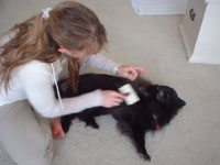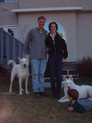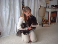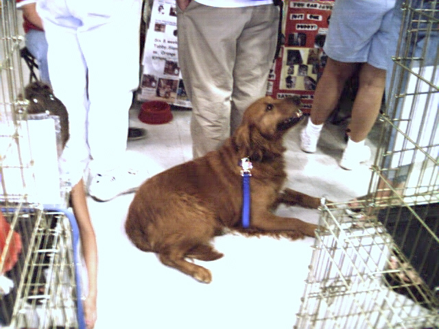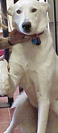 Stewart's new family not only took our 6 week training which he excelled at, but took the therapy dog test and passed. He is not only picking up the kids from school with mom, sleeping on his little girl's bed every night, but visiting kids in the hospital. And to think that his original owner threw him away at 3 years old after he spent 3 years abandonned in his dog run year-round, and called us to take him after he no longer could stud him out to breed. (He had the dullest coat and seizures when he was given to us by his owner, and with his new loving family that keeps him indoors, he has had absolutely no seizures and is shiny and healthy). |