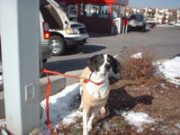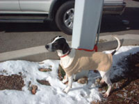 Katie 1.5 yr. S.F. Pointer is a small 25 lb. Pointer. She loves people and dogs. She was abandonned in the street after having a litter of pups, she was found starved to skin and bones freezing with bloody worn pads on her feet. Thank you Dr. McGuire for saving her, and Sara for taking her into your home to care for and adopting her with Lucky. Her new name is PENNY. Thanks for coming to show us how well trained she is.